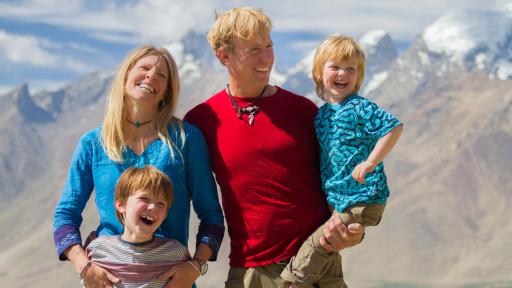 CHEVY CHASE, MD (April 14, 2015) – Trekking through the Himalaya (with a short stop at Mt. Everest’s base camp), sailing the Ganges River, crossing the North Pacific Ocean on a container ship, meditating with monks in a Tibetan monastery – these are not the typical activities you might expect during a family vacation with two young children. But the Kirkby family is on an extraordinary adventure halfway around the globe – and inviting everyone to come along. Travel Channel’s mesmerizing and cinematic new series, “Big Crazy Family Adventure,” premiering Sunday, June 21 with back-to-back episodes at 9:00 p.m. & 10:00 p.m. ET/PT, follows wilderness guide, writer and award-winning photographer Bruce Kirkby throughout this epic trip – from his home in Kimberley, British Columbia, to a remote monastery in the Himalaya – with his wife, Christine Pitkanen, and their two young boys: Bodi, 7 and Taj, 3. There’s just one catch: on their 13,000-mile adventure they won’t be taking ANY airplanes. To fully experience the life-changing and serendipitous moments that exploring the world provides, they’ll get to their final destination through surface travel only – canoe, container ship, ferry, high-speed train, river boat, tuk tuk, pony, their own eight feet and more. The series is comprised of nine, hour-long episodes.