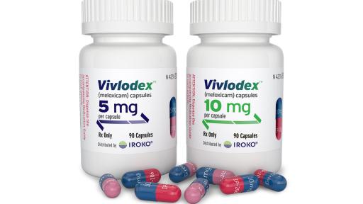 Iroko Pharmaceuticals, LLC, a global specialty pharmaceutical company dedicated to advancing the science of analgesia, announced today that the United States Food and Drug Administration (FDA) approved VIVLODEX™ (meloxicam) capsules, a nonsteroidal anti-inflammatory drug (NSAID), for the management of osteoarthritis pain in 5 mg and 10 mg doses administered once daily. 1 VIVLODEX is the first FDA-approved low dose SoluMatrix® meloxicam. This marks an important milestone for the 27 million Americans who live with osteoarthritis. 2