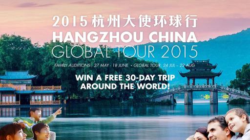New York / June 3, 2015 / PR Newswire – The Hangzhou Tourism Commission (HTC) announces the official launch of a social media campaign called, Global Tour 2015, which will send one U.S. and one Chinese family, along with a media “Storyteller,” on a free 30-day trip around the globe from July 24th through August 22nd.