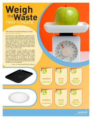 Join the Sodexo fight against food waste. Stopping food waste is one of the quickest ways to curb climate change. Think about it. Americans throw out 25 percent of the food they prepare – that’s a quarter of your dinner plate or two slices from a whole pizza. Then what? The waste ends up in a landfill where it creates lots of damage. No, it doesn’t just biodegrade as you might think. Food waste creates methane gas, which is at least 21 times more potent than carbon dioxide. Methane wrecks the ozone layer and heats up the planet. You can stop it today.