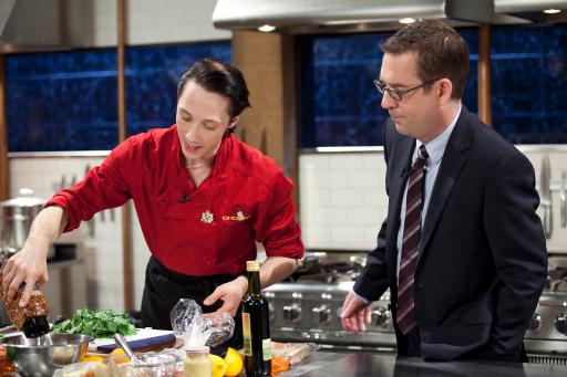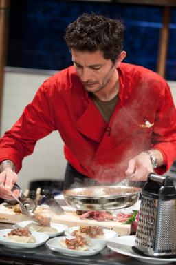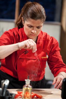 NEW YORK – February 26, 2013 – Season 3 of Food Network’s top-rated series Chopped All-Stars returns Sunday, April 7th at 9pm ET/PT, as sixteen culinary competitors battle it out for the title of All-Star champion and a $50,000 prize for the winner’s charity. The five-part competition series, hosted by Ted Allen, includes four chefs going head-to-head each week in themed episodes featuring Food Network chefs vs. Cooking Channel chefs, an all-out battle of the Mega Chefs, the much anticipated battle of the Chopped judges, and a can’t miss culinary showdown as four celebrities with a shared love of cooking compete against each other in the Chopped kitchen. Judged by a rotating roster of Chopped regulars who decide who gets “chopped” each week, including Maneet Chauhan, Marcus Samuelsson, Aarón Sánchez, Chris Santos and Geoffrey Zakarian, the competitors are challenged to create delectable courses in a limited amount of time from the ingredients in the renowned Chopped mystery basket. The winner of each episode will compete for the grand prize on Sunday, May 5th at 9pm ET/PT.