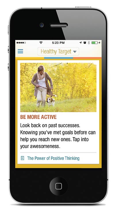 Healthy Target empowers users to live a healthier life and achieve their health and fitness goals by informing and educating users with the latest physician-reviewed content mapped against attainable user goals and suggested positive habits.