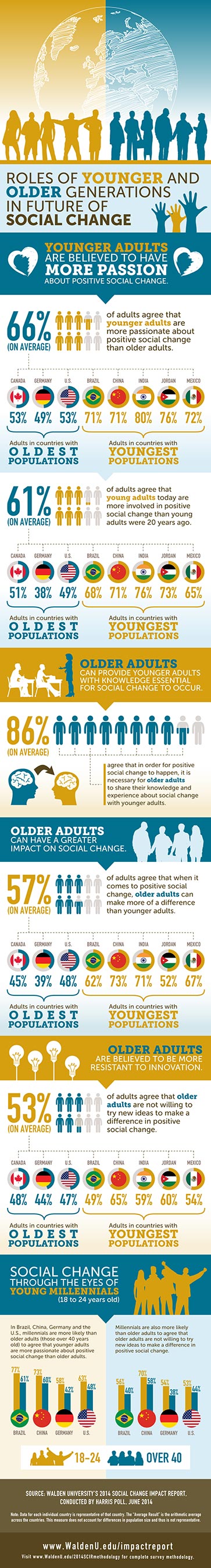 Walden University first commissioned this annual survey in 2011 to discover the current state of social change around the world. Designed to provide a barometer of who is engaged in social change, what is important to them and how they work together to advance social change issues of interest now and in the future, Walden’s Social Change Impact Report includes attitudes, behaviors and motivations from members of the international community.