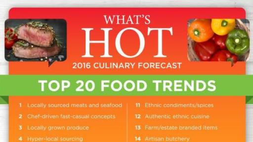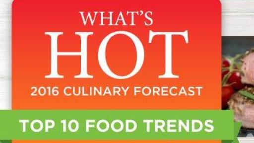 The National Restaurant Association (NRA) annually explores the top menu trends for the coming year. For this year’s What’s Hot culinary forecast, the NRA surveyed nearly 1,600 professional chefs – members of the American Culinary Federation (ACF) – to find which foods, beverages and culinary themes will be hot on restaurant menus in 2016.