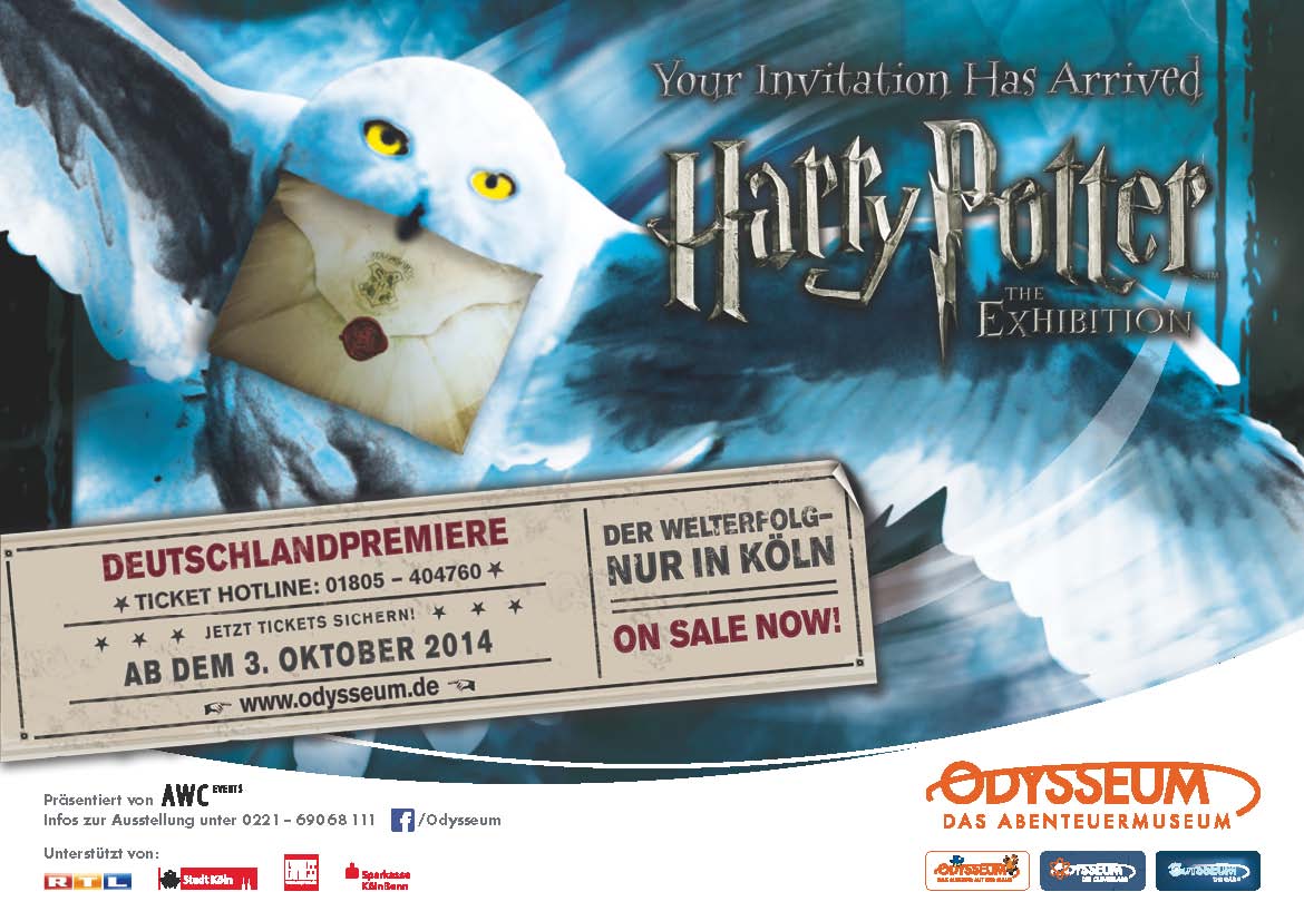 Harry Potter: The Exhibition is open now for a limited time during the ODYSSEUM’s regular opening hours: Mondays through Thursdays from 9 am to 7 pm, Fridays through Sundays, bank holidays and school holidays in North Rhine-Westphalia from 9 am to 8 pm.