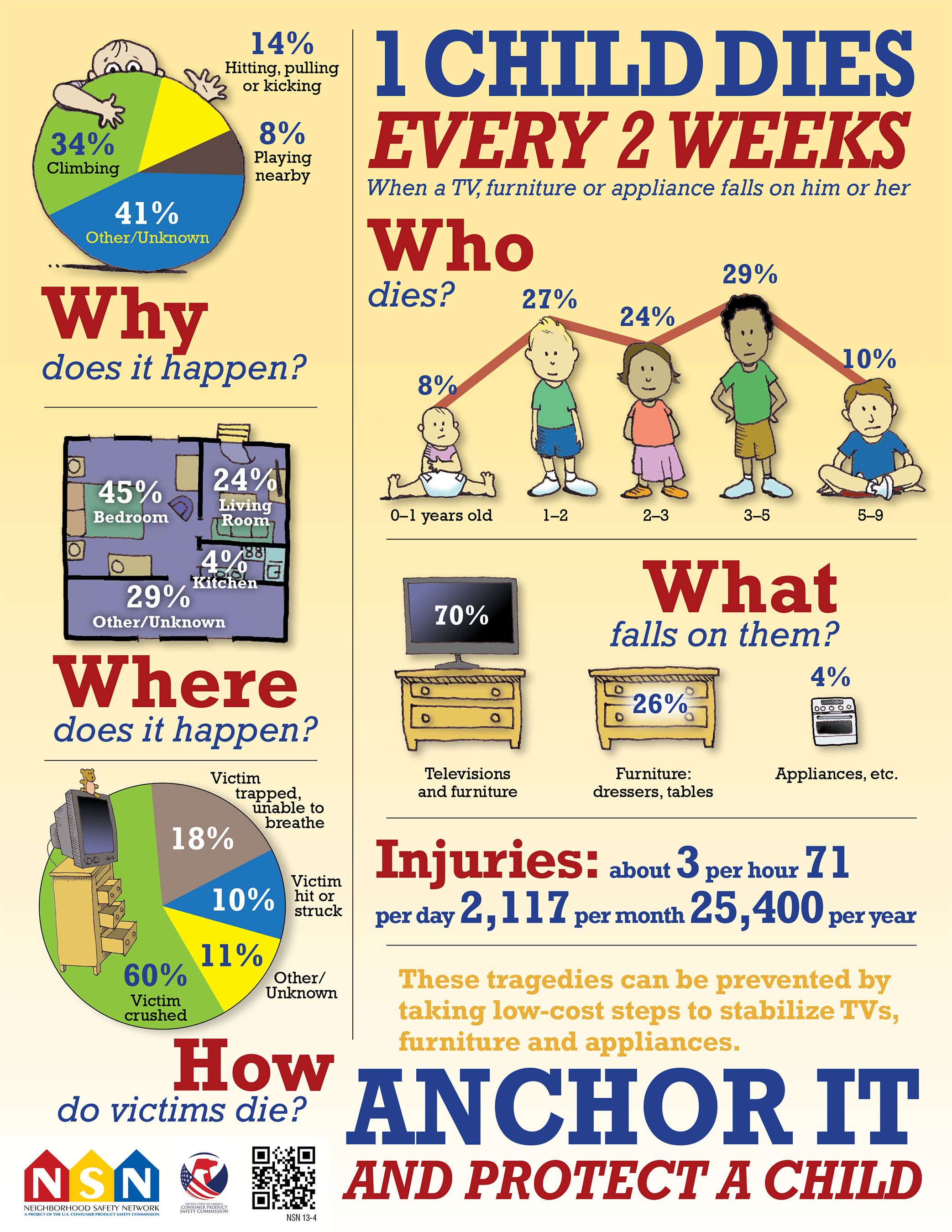 Parents: 1 child dies every 2 weeks when a TV, Furniture or appliance falls over onto him. #AnchorIt Tweet