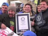 The record breaking attempt occurred between the first and second quarter of the game and lasted for 60 seconds, per official Guinness rules. The effort broke the previous record of 4,200 participants, which was set earlier this year.