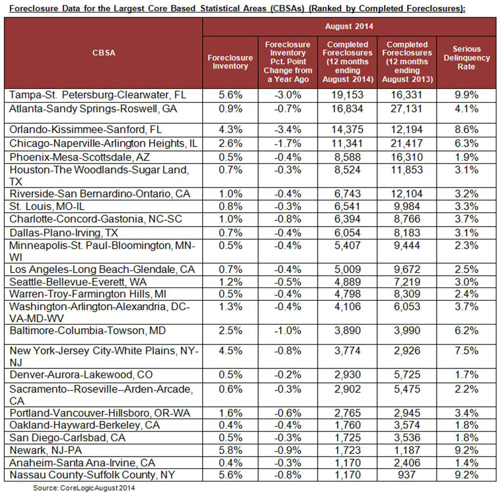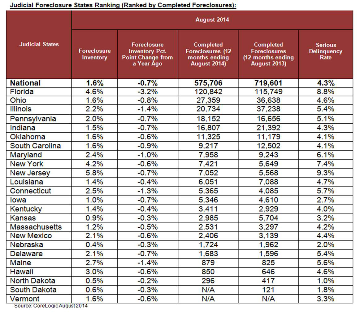 The data in this report represents foreclosure activity reported through August 2014.