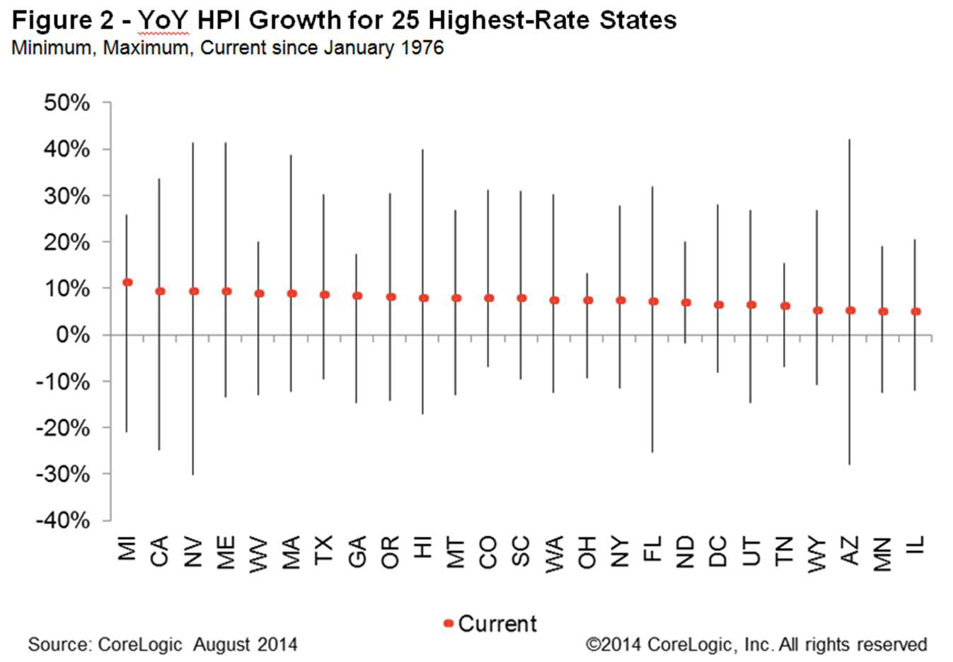 Figure 2: YoY HPI Growth for 25 Highest Rate States