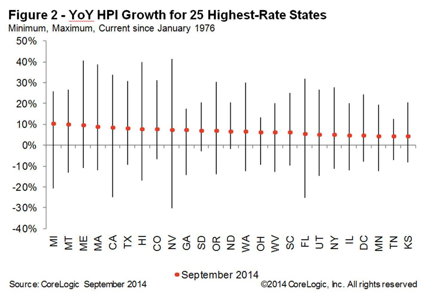 Map 2 – September 2014 CoreLogic HPI Single Family Excluding Distressed