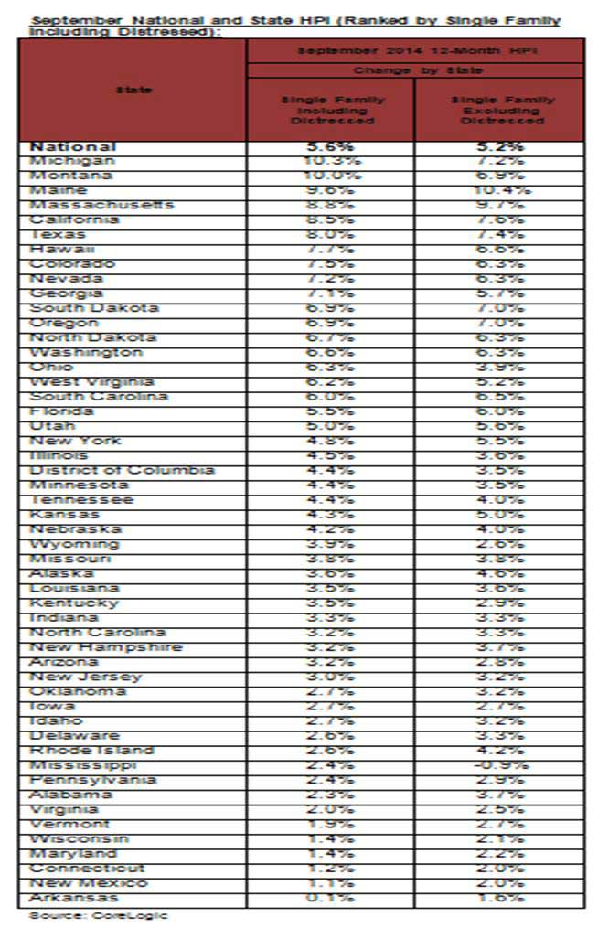 CoreLogic Reports Home Prices Rose by 5.6 Percent Year Over Year in September 2014