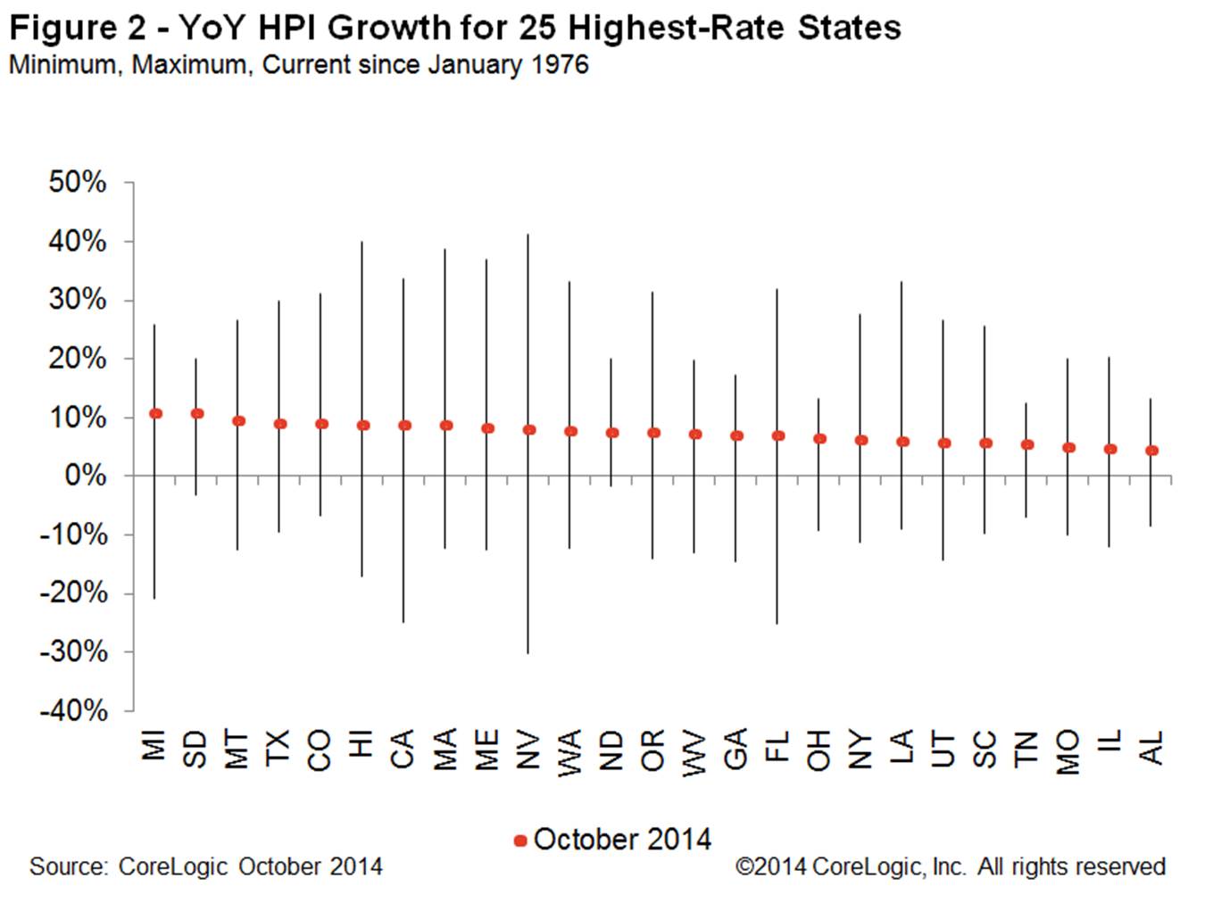Map 2 – October 2014 CoreLogic HPI Single Family Excluding Distressed