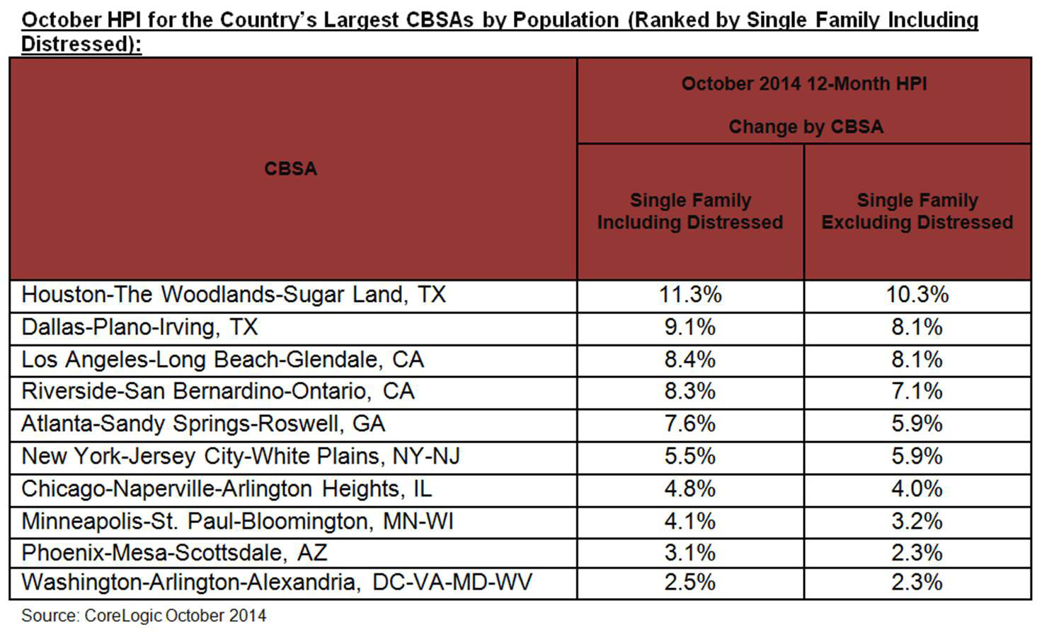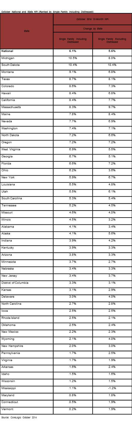 Map 1 – October 2014 CoreLogic HPI Single Family Including Distressed