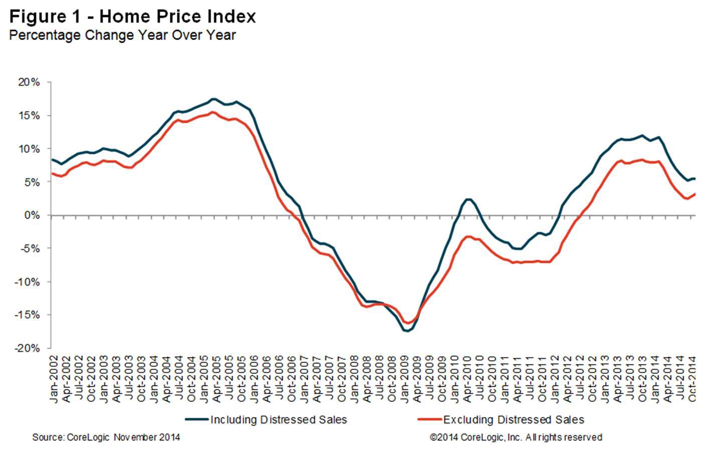- Including distressed sales, the 5-year HPI change (from November 2009 to November 2014) is 18.9 percent.