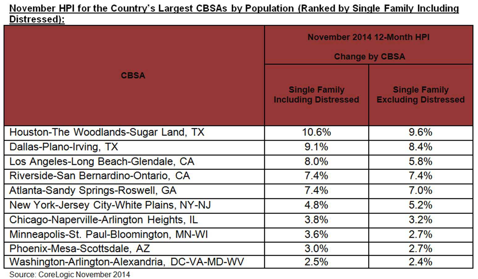 Map 1 – November 2014 CoreLogic HPI Single Family Including Distressed