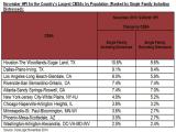 - Ninety-six of the top 100 Core Based Statistical Areas (CBSAs) measured by population showed year-over-year increases in November 2014. The four CBSAs that showed year-over-year declines were: Baltimore-Columbia-Towson, Md.; Camden, N.J.; Greensboro-High Point, N.C.; and Winston-Salem, N.C.