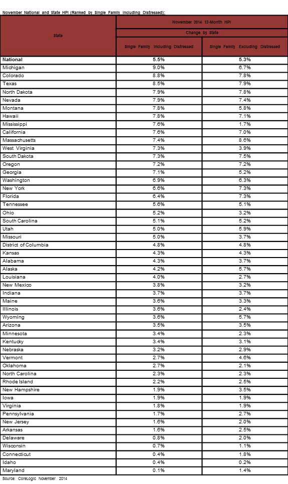 CoreLogic Reports Home Prices Rose by 5.5 Percent Year Over Year in November 2014