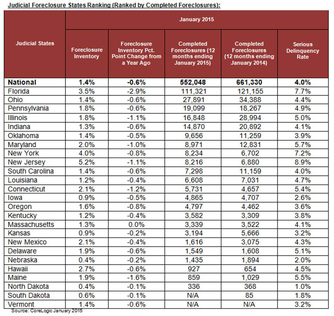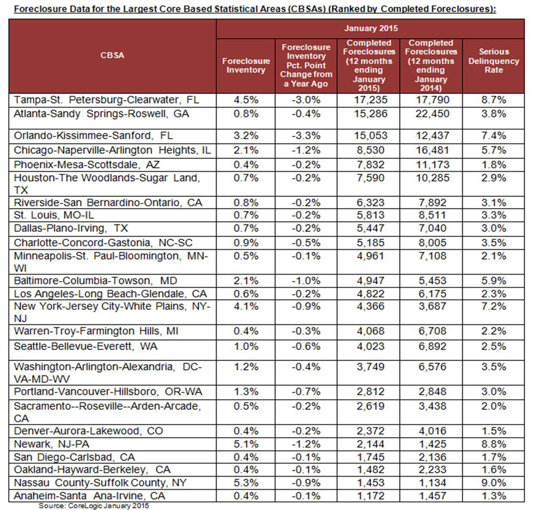 CoreLogic Reports January 2015 National Foreclosure Inventory Down 33.2 Percent Year Over Year