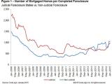 This report separates state data into judicial versus non-judicial foreclosure state categories. In judicial foreclosure states, lenders must provide evidence to the courts of delinquency in order to move a borrower into foreclosure. In non-judicial foreclosure states, lenders can issue notices of default directly to the borrower without court intervention. This is an important distinction since judicial states, as a rule, have longer foreclosure timelines, thus affecting foreclosure statistics.