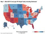 The CoreLogic HPI Forecast indicates that home prices, including distressed sales, are projected to increase by 0.8 percent month over month from March 2015 to April 2015 and on a year-over-year basis by 5.1 percent** from March 2015 to March 2016. Excluding distressed sales, home prices are expected to increase by 0.7 percent month over month from March 2015 to April 2015 and by 4.7 percent** year over year from March 2015 to March 2016. The CoreLogic HPI Forecast is a projection of home prices using the CoreLogic HPI and other economic variables. Values are derived from state-level forecasts by weighting indices according to the number of owner-occupied households for each state.