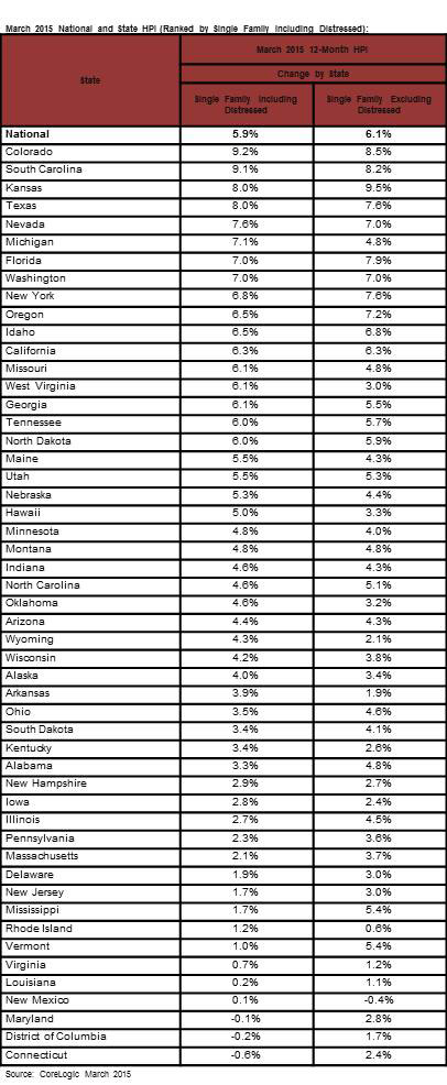 CoreLogic Reports National Homes Prices Rose by 5.9 Percent Year Over Year in March 2015