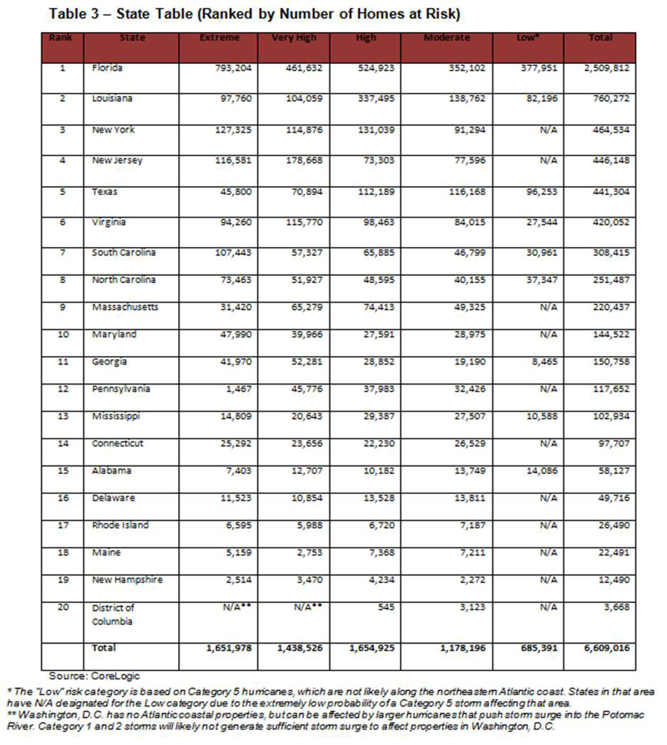 Table 3 – State Table (Ranked by Number of Homes at Risk)