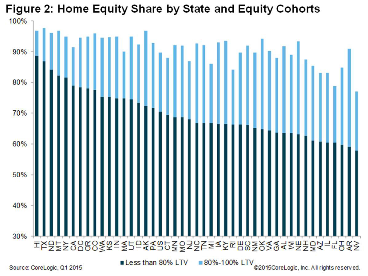 “The CoreLogic Home Price Index for the U.S. was up 2.5 percent during the first quarter of 2015, which has improved the equity position of homeowners,” said Frank Nothaft, chief economist for CoreLogic. “About 90 percent of homeowners now have housing equity and, as a result, have experienced an increase in wealth, which can spur additional consumption and investment expenditures. The remaining 10 percent of owners with negative equity will find their home value rising while they continue to pay down principal on their amortizing mortgage loan.”