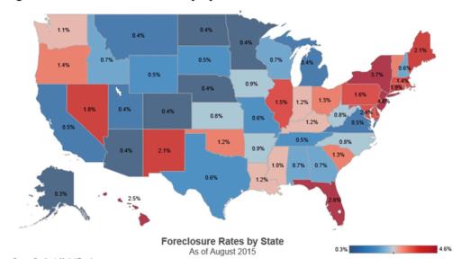 - Four states and the District of Columbia had the highest foreclosure inventory rate as a percentage of all mortgaged homes for the 12 months ending in August 2015: New Jersey (4.6 percent), New York (3.7 percent), Florida (2.6 percent), Hawaii (2.5 percent) and the District of Columbia (2.4 percent).