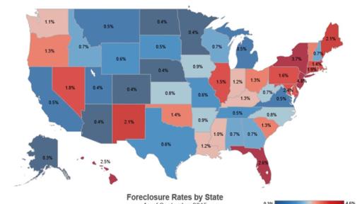 - Four states and the District of Columbia had the highest foreclosure inventory rate in September 2015: New Jersey (4.6 percent), New York (3.7 percent), Florida (2.6 percent), Hawaii (2.5 percent) and the District of Columbia (2.4 percent).