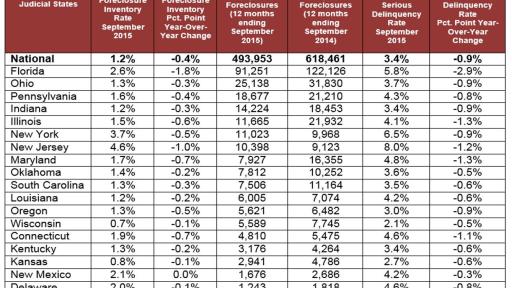 “The largest improvements in the foreclosure inventory continue to be in judicial states on the East Coast such as Florida and New Jersey,” said Sam Khater, deputy chief economist for CoreLogic. “While the overwhelming majority of states are experiencing declines in their foreclosure rates, four states experienced small increases compared with a year ago.”