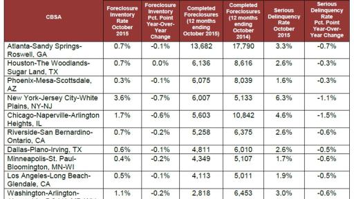 Foreclosure Data for Select Core Based Statistical Areas (CBSAs) Ranked by Completed Foreclosures: