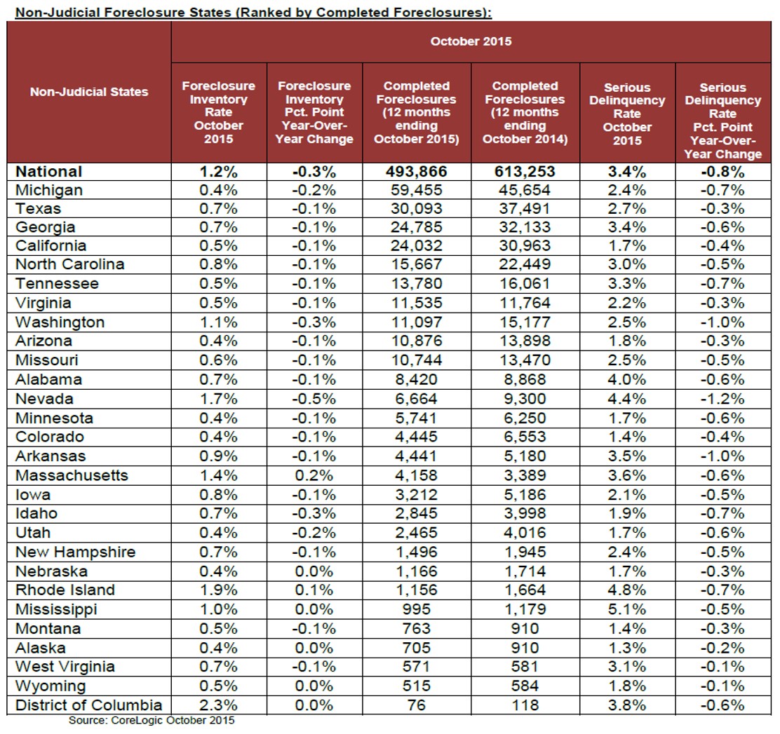 Non-Judicial Foreclosure States (Ranked by Completed Foreclosures)