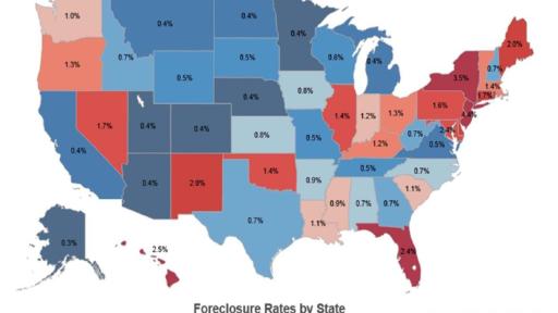 - Four states and the District of Columbia had the highest foreclosure inventory rate in November 2015: New Jersey (4.4 percent), New York (3.5 percent), Hawaii (2.5 percent), Florida (2.4 percent) and the District of Columbia (2.4 percent).