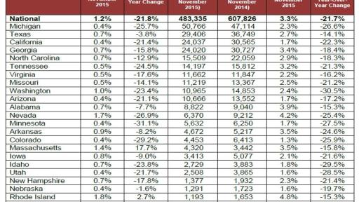 The data in this report represents foreclosure activity reported through November 2015.