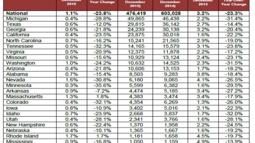 The data in this report represents foreclosure activity reported through December 2015.
