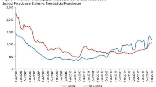 This report separates state data into judicial versus non-judicial foreclosure state categories. In judicial foreclosure states, lenders must provide evidence to the courts of delinquency in order to move a borrower into foreclosure. In non-judicial foreclosure states, lenders can issue notices of default directly to the borrower without court intervention. This is an important distinction since judicial states, as a rule, have longer foreclosure timelines, thus affecting foreclosure statistics.