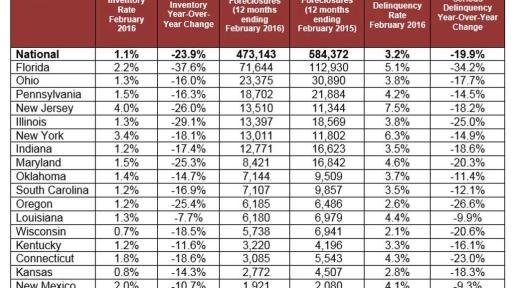 —National Foreclosure Inventory Down 23.9 Percent from February 2015—