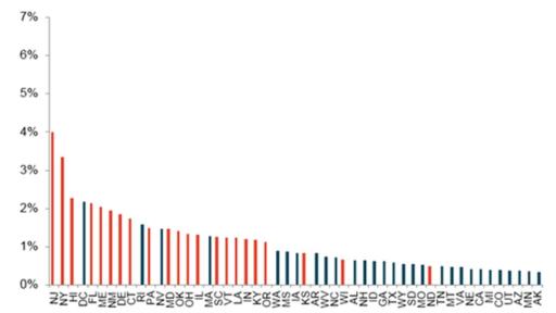- Four states and the District of Columbia had the highest foreclosure inventory as a percentage of all mortgaged homes in March 2016: New Jersey (4.0 percent), New York (3.3 percent), Hawaii (2.3 percent), the District of Columbia (2.2 percent) and Florida (2.1 percent).