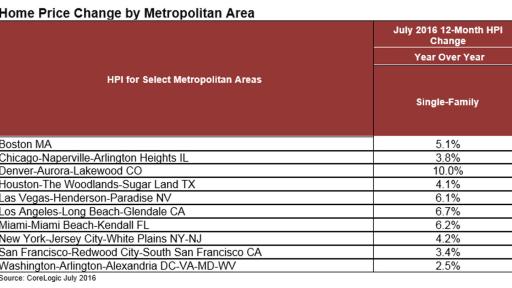 CoreLogic US Home Price Report Shows Prices Up 6 Percent Year Over Year in July 2016