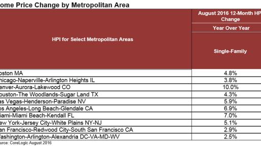 CoreLogic US Home Price Report Shows Prices Up 6.2 Percent Year Over Year in August 2016