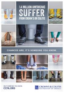 The Crohn’s &Colitis Foundation of America (CCFA) is the largest voluntary non-profit health organization dedicated to finding cures for Inflammatory Bowel Diseases (IBD). CCFA’s mission is to cure Crohn’s disease and ulcerative colitis, and to improve the quality of life of children and adults who suffer from these diseases. The Foundation works to fulfill its mission by funding research, providing educational resources for patients and their families, medical professionals, and the public, and furnishing supportive services for those afflicted with IBD. For more information, visit www.ccfa.org, call 888-694-8872, like us on Facebook, find us on LinkedIn or follow us on Twitter.
