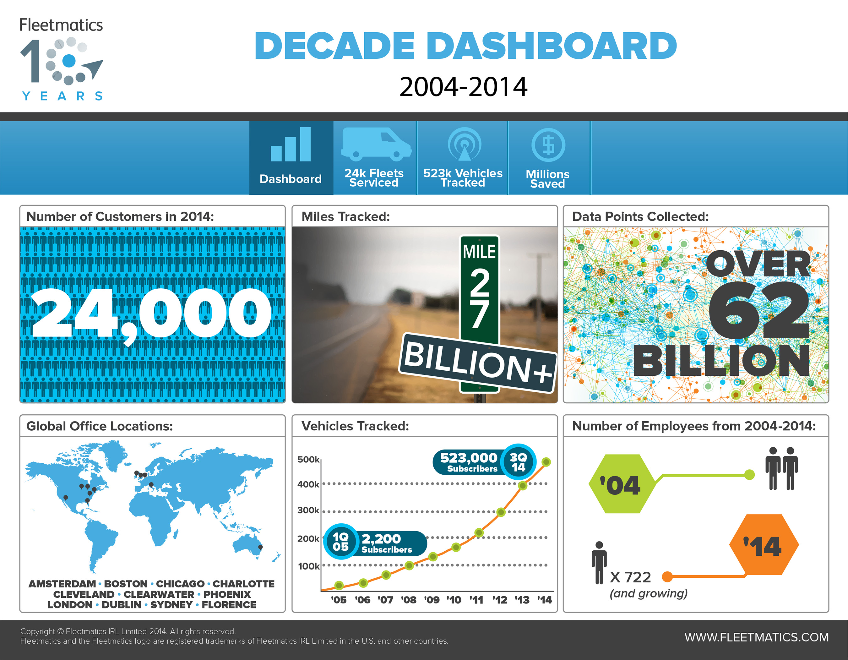 For further information on the 10th anniversary, visit: http://www.fleetmatics.com/10yearanniversary.
