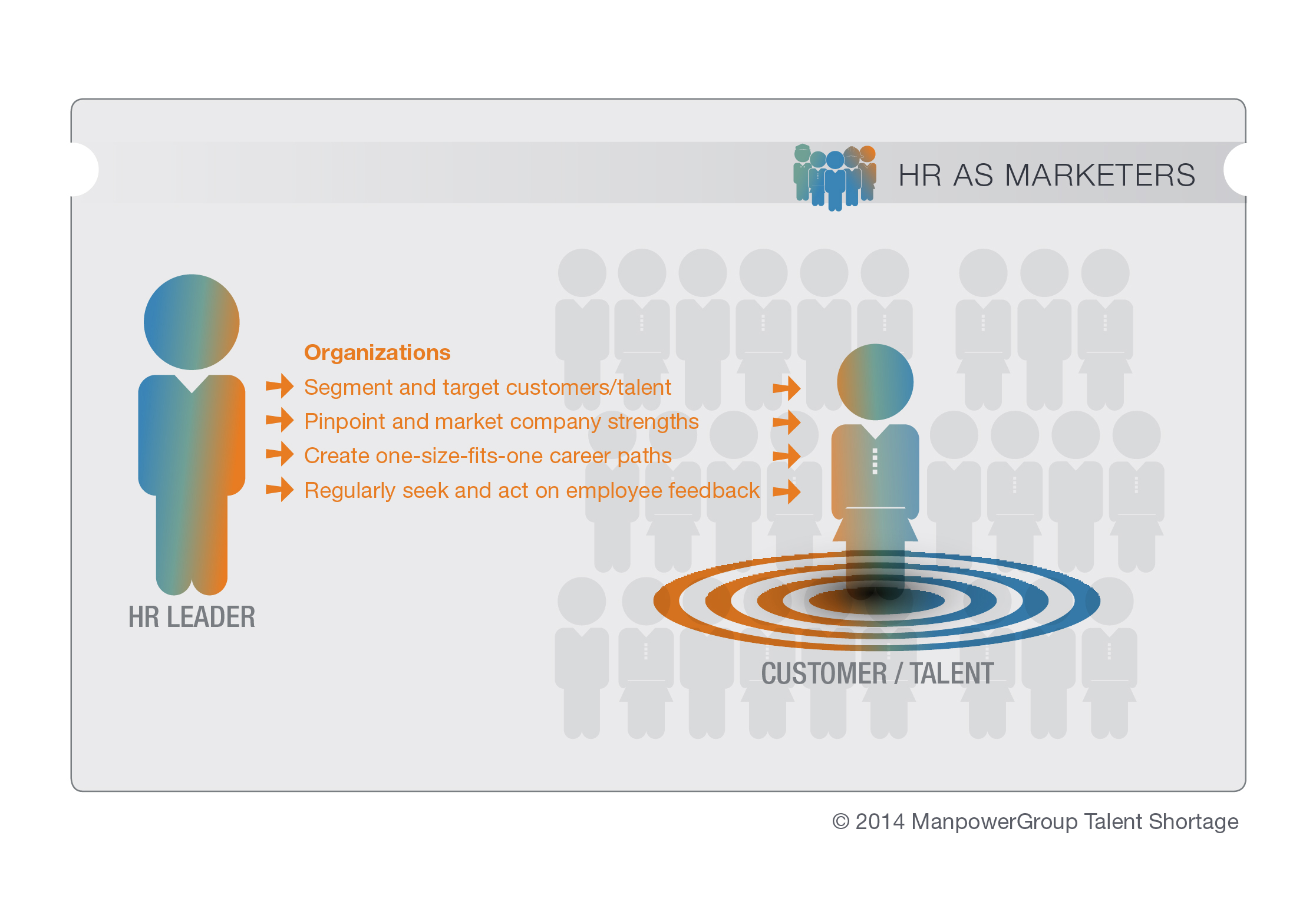 - Marketers: In a world of talent shortages, HR’s role has expanded to include attracting and retaining customers (i.e., talent), in the same way that marketers segment and target consumers of the company’s products and services.