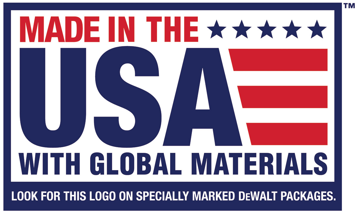 Look for DEWALT Made in the USA with global materials corded and cordless products this summer. For more information on DEWALT’s initiative to make products in the USA using global materials, and to view a full list of product offerings, visit www.dewalt.com/americanpride or watch a video about it here.