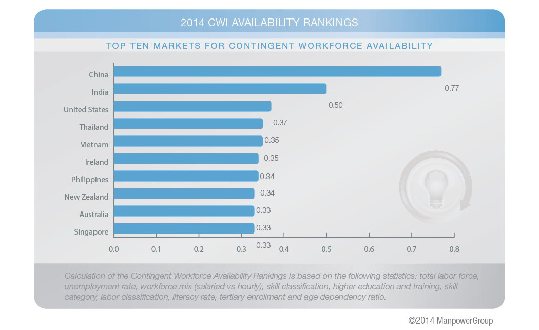 2014 Contingent Workforce Index from ManpowerGroup Solutions Reveals Global Shifts in Contingent Labor Availability