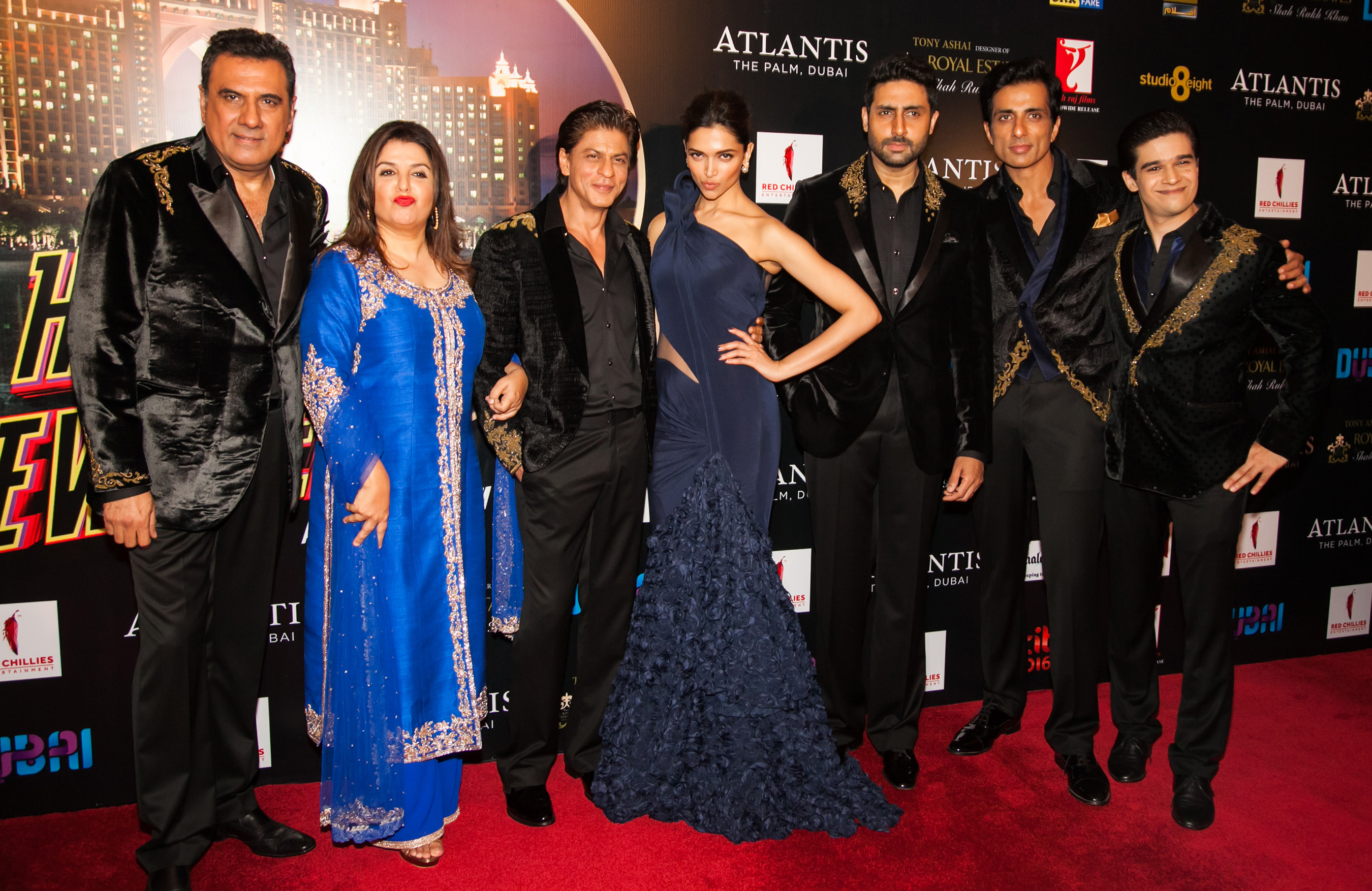 Dubai, United Arab Emirates: 23rd October 2014/PRNewswire – The hottest ticket in town last night was a VIP invitation to the exclusive international premiere of Director Farah Khan’s upcoming film, ‘Happy New Year.’ The glamorous event was held at Atlantis, The Palm in Dubai where most of the film was shot in 2013 with the all-star cast including Deepika Padukone, Shah Rukh Khan, Abhishek Bachchan, Boman Irani, Vivaan Shah, Sonu Sood and Jackie Shroff walking the red carpet.