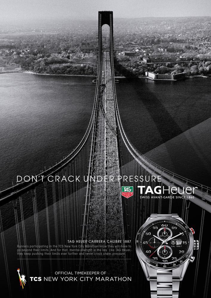 Having a presence at marathon sporting events is a change of strategic direction for TAG Heuer : this new partnership - which does not signal the abandoning of its favourite territory, motor racing - enables the brand to extend the range of imagery that backs up the message encapsulated in its « Don’t Crack Under Pressure » campaign. Furthermore, this is a field that has as yet been little exploited by Swiss watchmakers, which only serves as further proof of the pioneering spirit TAG Heuer has constantly demonstrated since 1860.