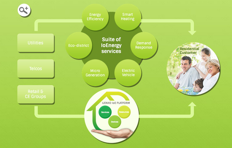 The Internet of Things (IoT) wave is boosting the smart home market with predictions of about 200 million smart households by 2018 (source: 2014 Strategic Analytics). At the same time, global digital brands are investing heavily in connected homes consumers products and ecosystems, B2C distribution models and new IoT alliances. These create a huge opportunity for consumers to benefit from advanced and appealing user experiences in their daily life. With the IJENKO IoE2 platform, Energy and Communication service providers can now build and deliver value across those various ecosystems and verticals, create an augmented and unified customer experience, and grow their upstream business value thanks to increased consumer stickiness and use of the services.