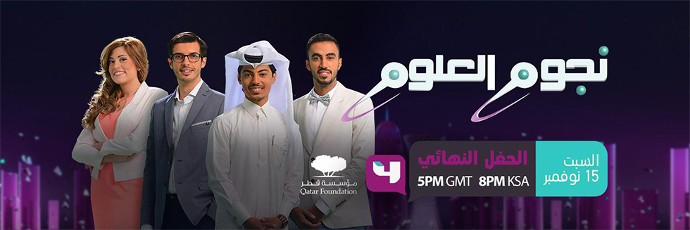 Four youths who have captivated audiences across the Arab world will compete to be named the region’s top innovator in the live finale of Stars of Science, Qatar Foundation’s “edutainment reality” TV program on MBC4. The ranking of finalists Thieab Al Dossary of Bahrain, Sultan AlSubhi of Oman, Rania Bou Jaoudeh of Lebanon and Mohammed Al Housani of Qatar will be determined by a public vote and a jury deliberation in the live finale, which will air from the Stars of Science studios in Doha on MBC4 on Saturday, 15 November 2014 at 8:00pm KSA/ 5:00pm GMT.
