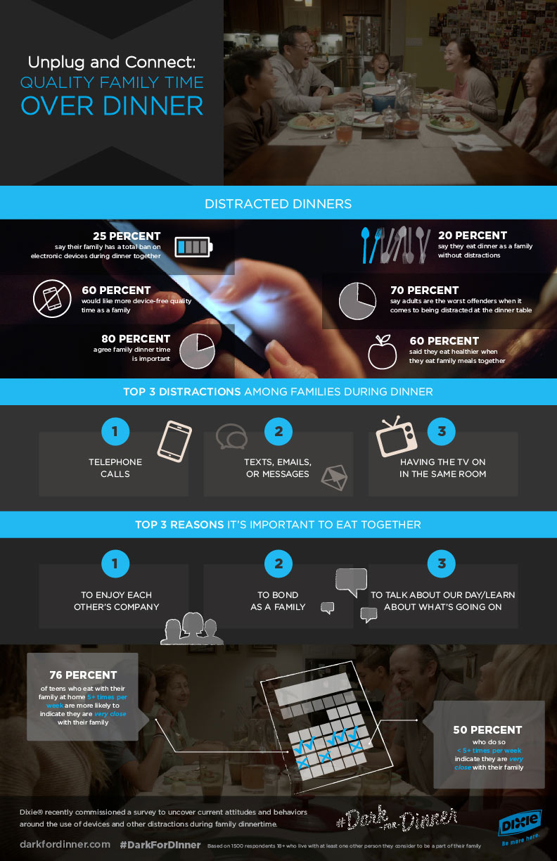 To further support the campaign, Dixie commissioned a national survey to uncover consumer insights on current attitudes and behaviors around the use of devices and other distractions during family dinnertime. The survey showed: